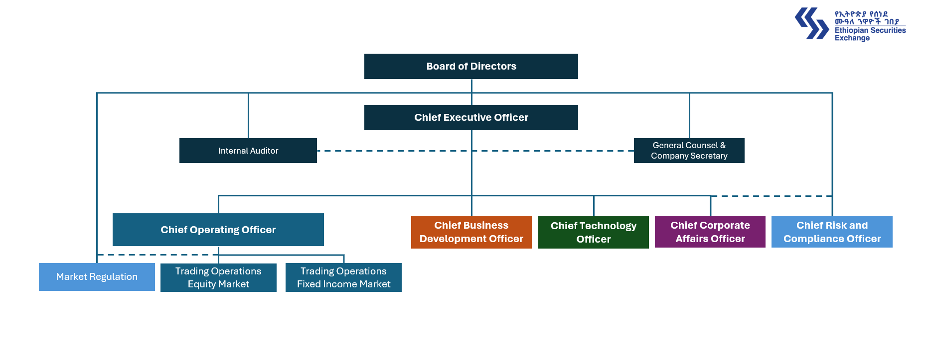 The Ethiopian Securities Exchange is organized as a share company in accordance with the Commercial Code of Ethiopia (2021). ESX implements a corporate organization and governance framework following international best practices.