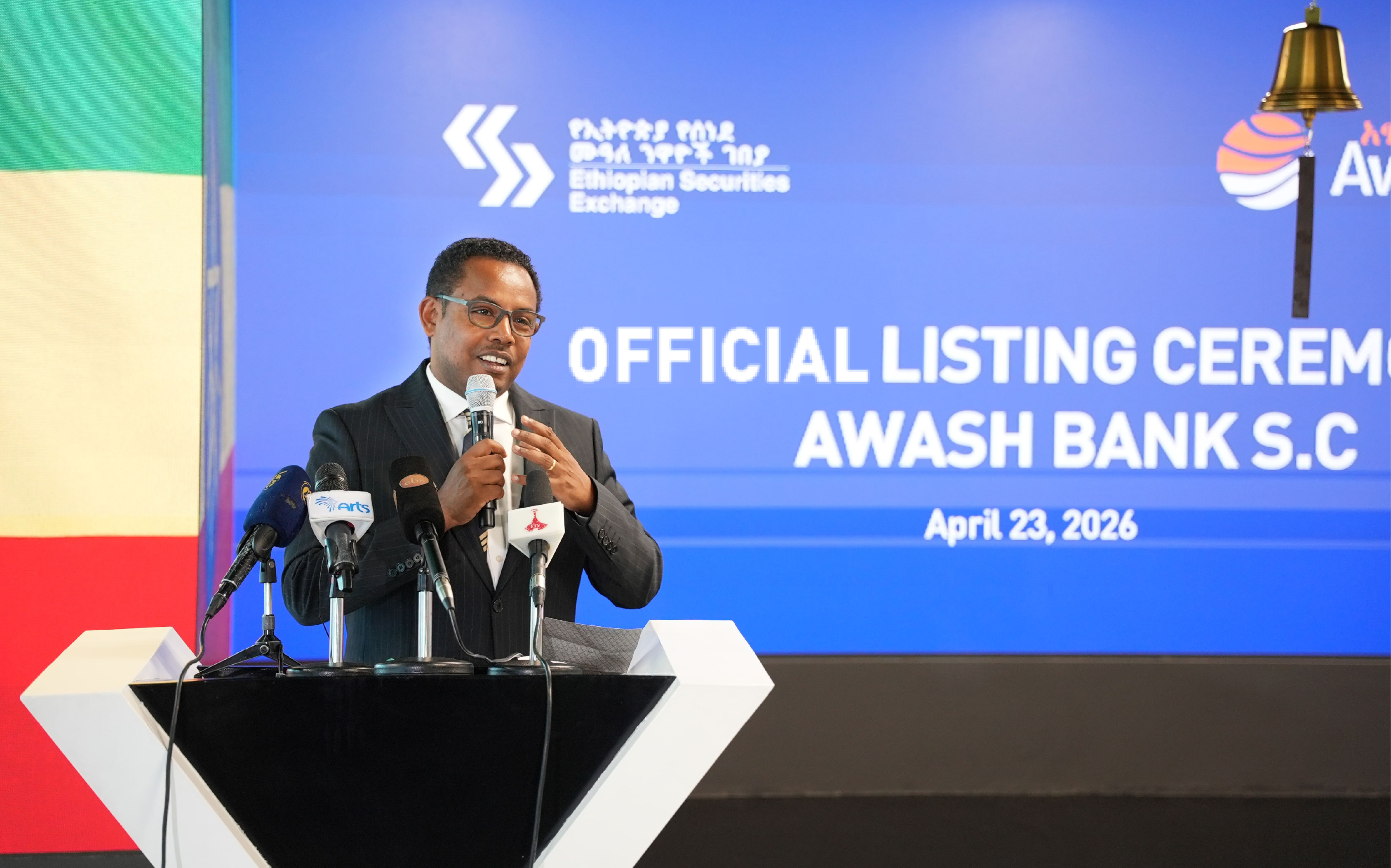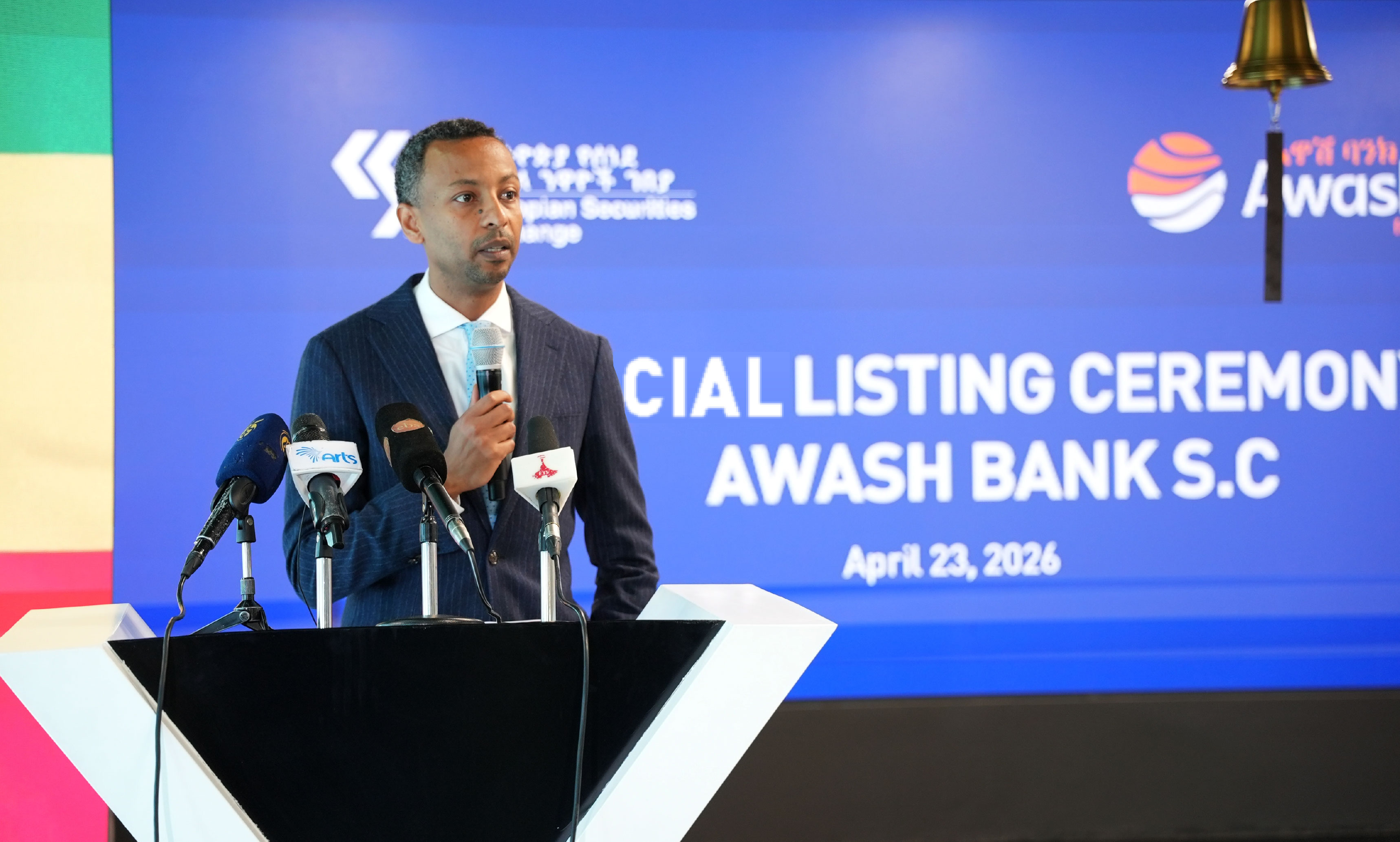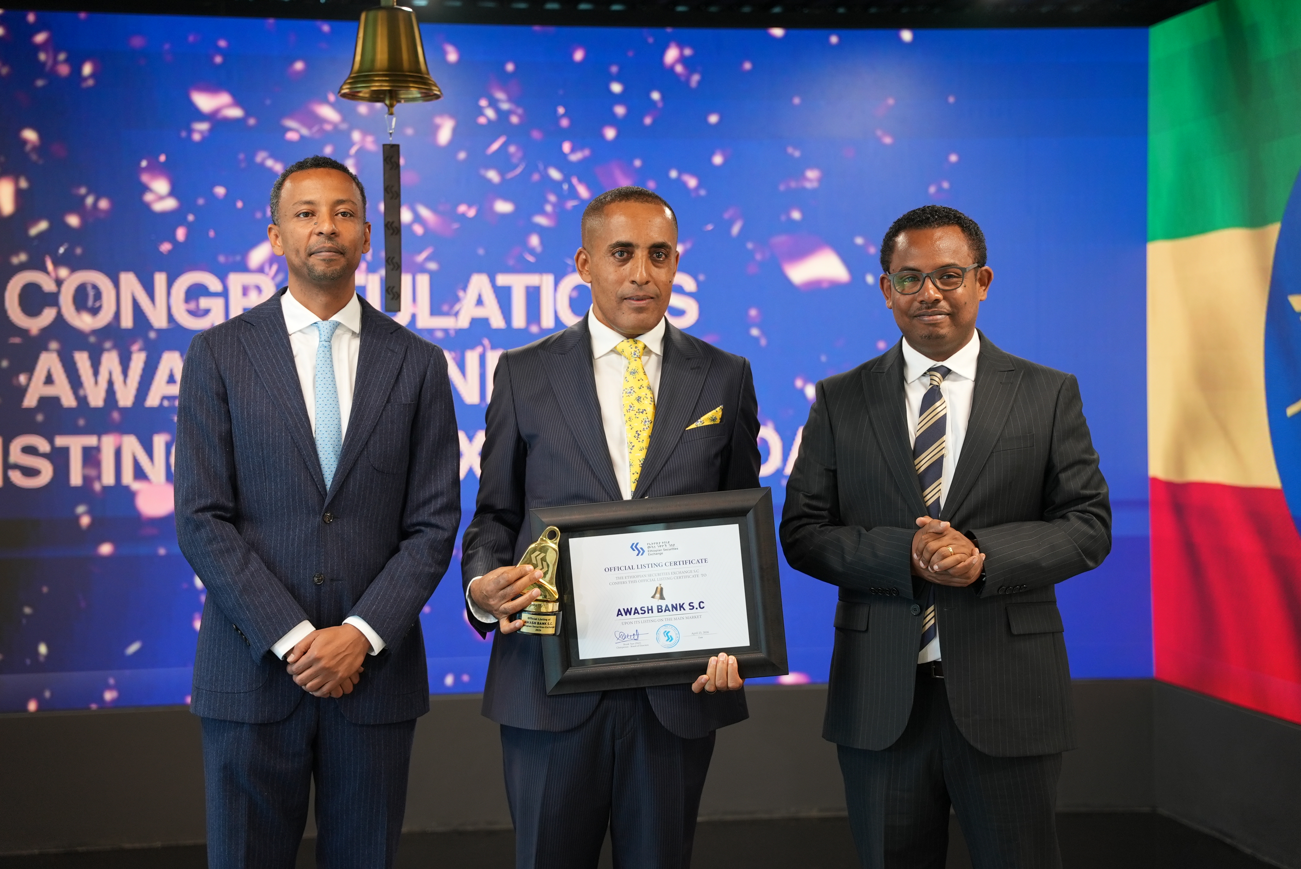 Addis Ababa, Ethiopia – April 23,2026 – The Ethiopian Securities Exchange (ESX) is pleased to announce the official listing of Awash Bank S.C. on its main market, marking a historic milestone in the continued development of Ethiopia’s securities market. The listing was commemorated today with a Bell Ringing Ceremony at the Exchange trading floor, marking Awash Bank’s debut as one of the pioneer financial institutions to list on the Ethiopian Securities Exchange.
